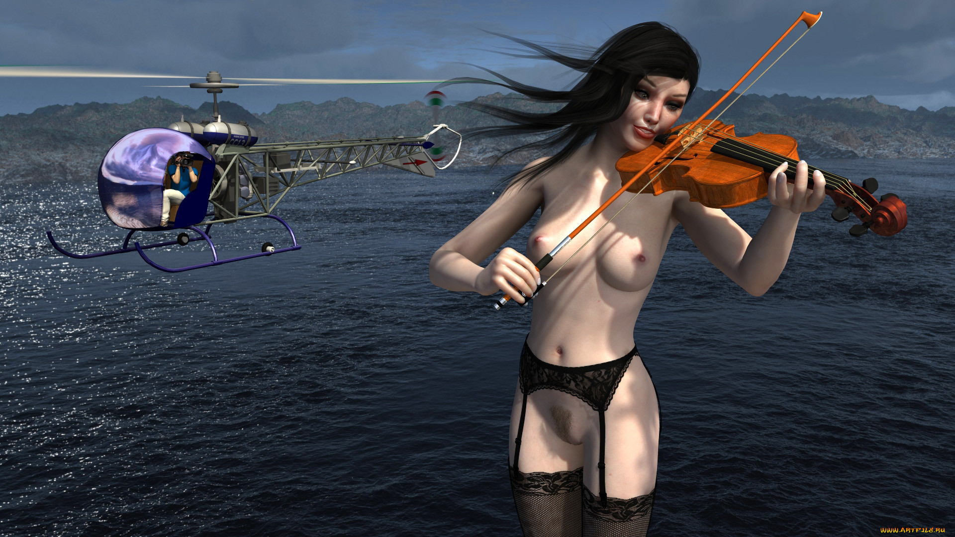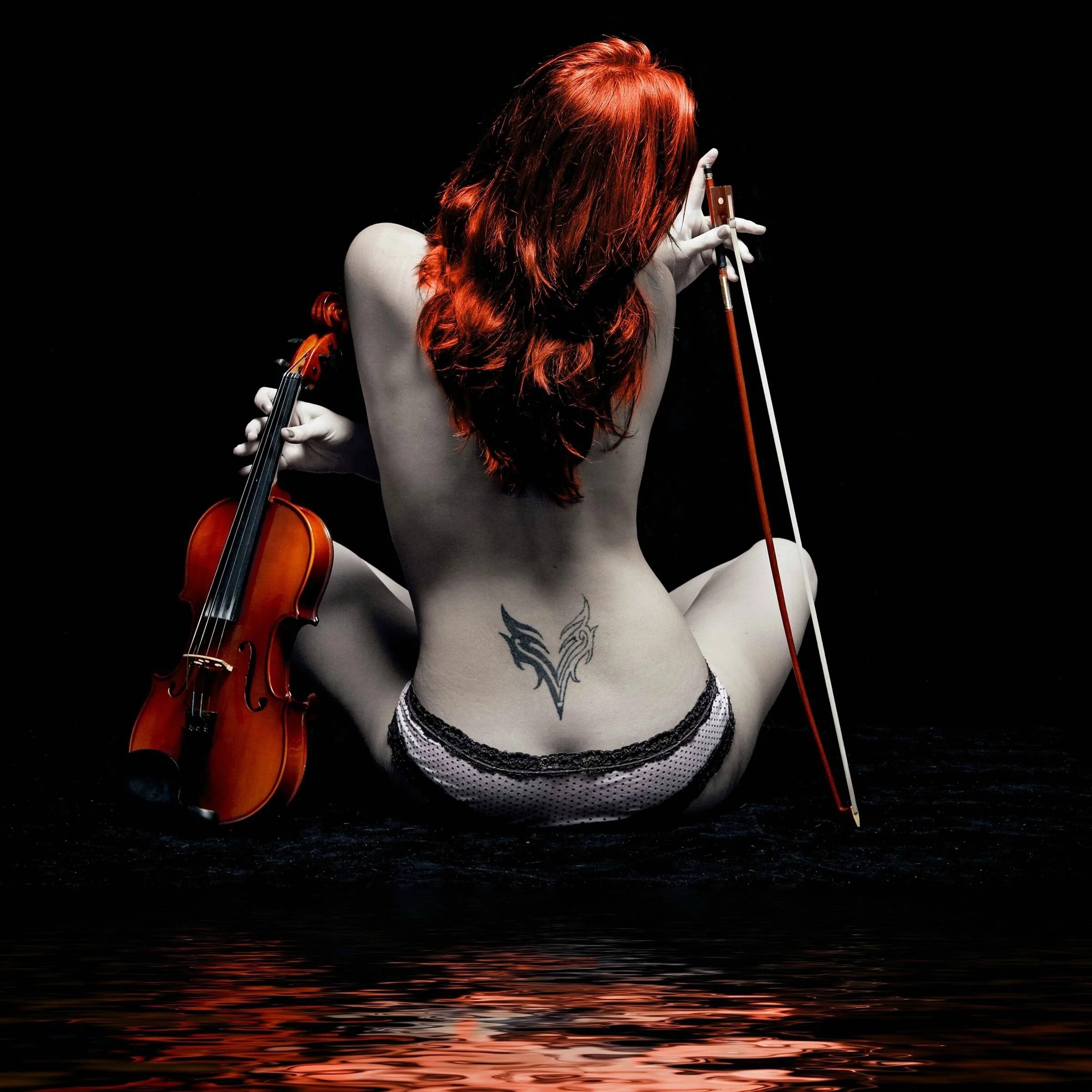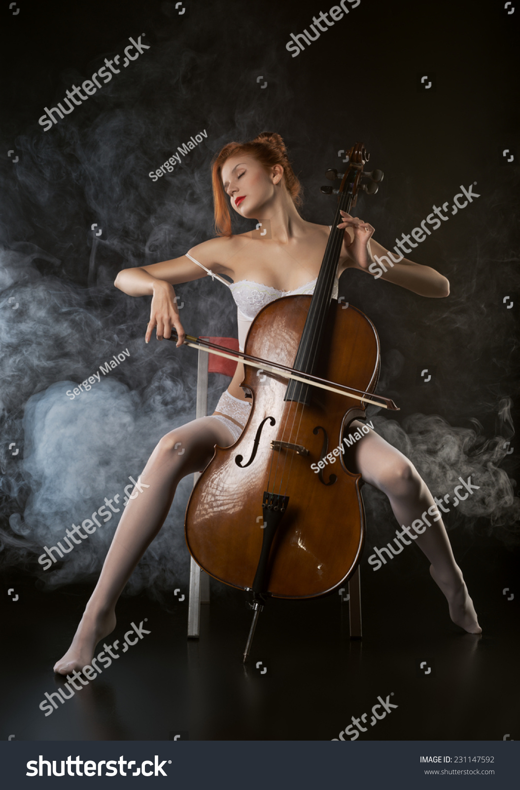 Голая скрипачка в чулках