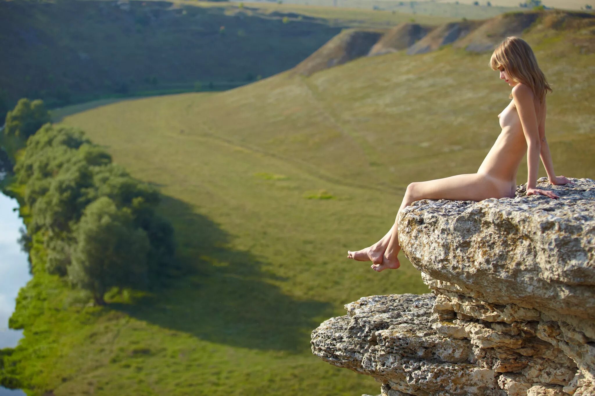 Девушка голышом на камне