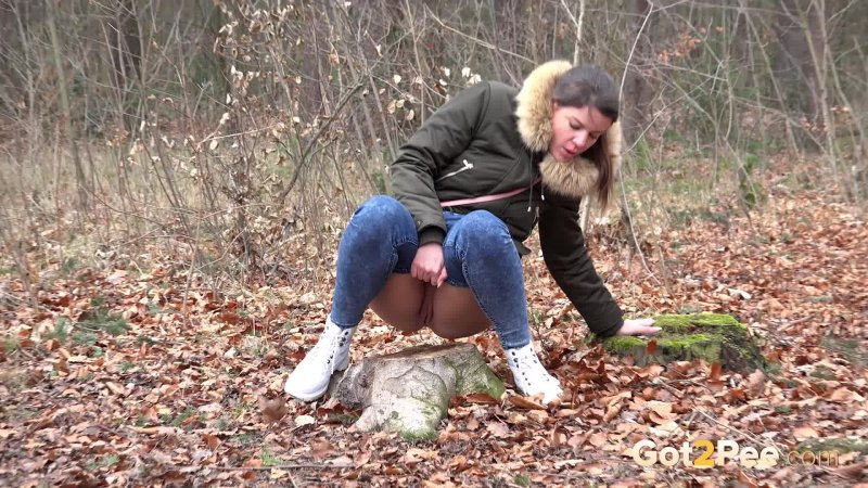 Писает в лесу